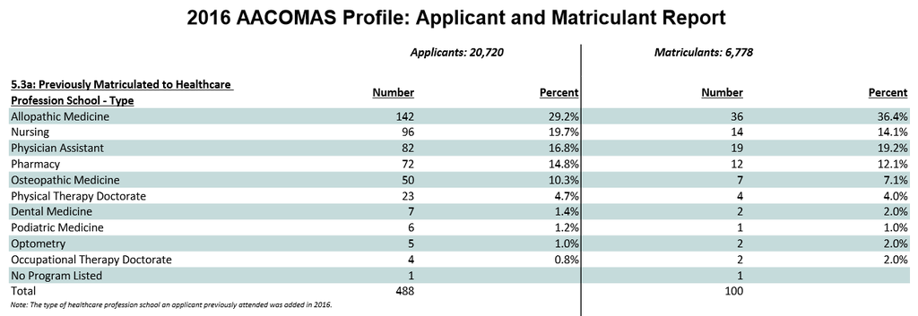 Where did you find this!?In 2016, 142 DO applicants had been previously matriculated at an MD program. Of those 142 applicants, 36 (25%) ultimately matriculated into a DO program.
