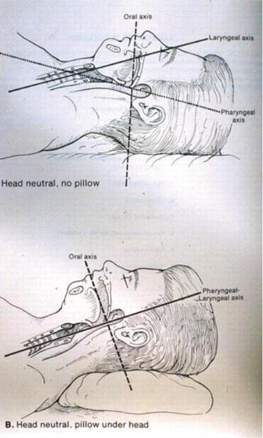 The blanket flexes the neck (to align the pharyngeal and laryngeal axes), but you still have to tilt the head back to get them to extend at the head into the sniffing position (to align the oral axis with the other axes):I’ve always been a pillow guy. You want 2 curves, flexion in the lower cervical vertebrae coupled with atlanto-occipital extension. The lower figure omits the atlanto-occipital extension. The upper figure omits the lower cervical flexion.