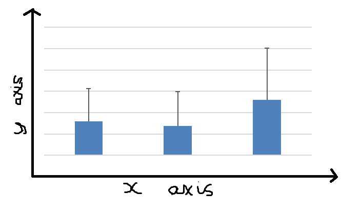 so say the x axis in the attachment was 'different diagnoses' and each bar represented a specific disease and the y axis was mean serotonin levels then the larger the error bars then the greater the standard deviation about the mean of the bar the error bars attached to i.e. for that specific disease. Is this correct?